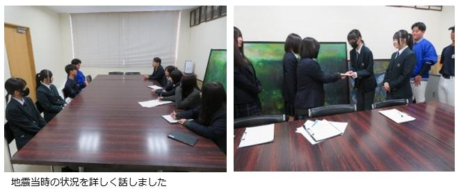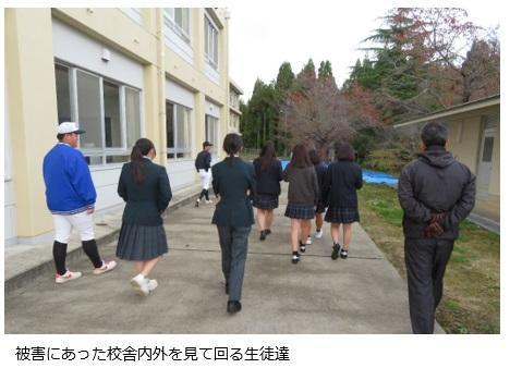松任高校の生徒達は学校の建物やグラウンドなどの被害状況を見学したり、本校生徒から地震当日の状況を直接聞いたりなどして、生々しい地震の被害の様子を実感していました。