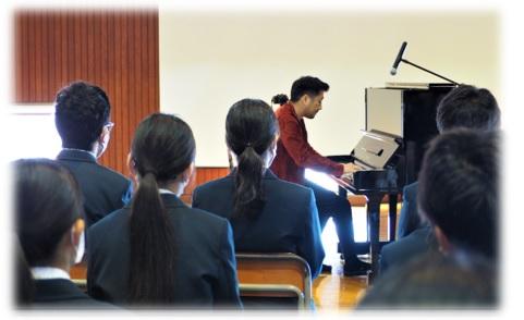 2024年11月19日 13時30分11月15日(金)、ピアニストの中村天平氏による復興応援コンサートが本校体育館で行われました。