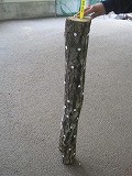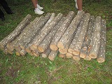 桑の木にはきれいに穴が開けられて、そこに一つ一つ、おがくずで固められたしいたけ菌を埋め込みました。
