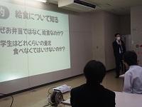 毎日食べている給食がどのようにして作られているのか,中学生が一食でとる必要のあるカロリーや栄養はどれくらいなのかなど,大変わかりやすく教えていただきました。