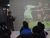 講師は、ラグビー元日本代表の斎藤祐也さんと金沢市ラグビーフットボール協会の皆さんです。