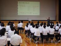 働くことの意義や職場体験での言葉遣い、マナー、おじぎの仕方などについて学びました。