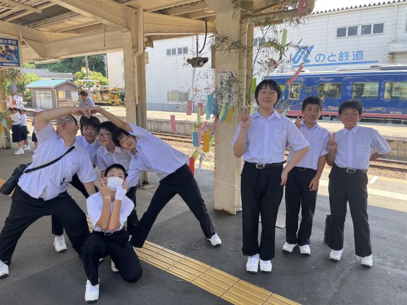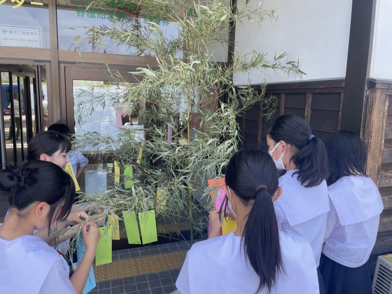 7月1日(火) 穴水駅で1年生が七夕の短冊を飾り付けてきました。