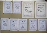玄関に飾られている 団体優勝旗 と 個人優勝カップ