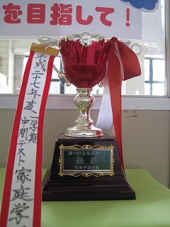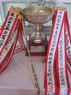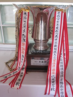 相撲部が県体で獲得しました。 玄関前に飾ってあります。 がんばりました!