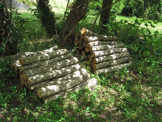 1年生しいたけ(のとてまり)も、木漏れ日の中、涼しそうです。