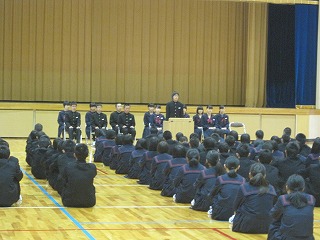 11月18日(木)輪島警察署穴水庁舎にて、生徒会執行部6人が輪島警察署長を前にサポート校としての本校生徒会の宣言文を読み上げ、署長から交通安全啓発サポート校として委嘱状を頂きました。