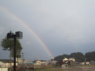 夕方、本校のグラウンドの向こう側に虹が現れました。