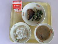 ごはん,ふくらぎの照り焼き,ごまよごし,呉汁,牛乳