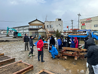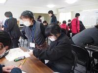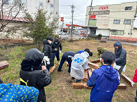 1月28日(火) 1年生は福祉体験として,穴水町の仮設住宅に赴き,入居者が利用する畑の木枠づくりと看板づくりをしました。