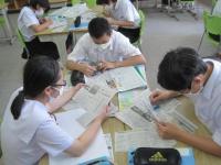 3年生が総合的な学習の時間にNIE(Newspaper In Education)に取り組み、「SDGs(持続可能な開発目標)」の17の大きなテーマから、一つ選び(例 「つくる責任つかう責任」「海の豊かさを守ろう」「住み続けられるまちづくりを」など)、そのテーマに関する新聞を切り抜き、壁新聞制作に取り組んでいます。世界において、そして地元でどんなことが問題で、どうすればそれを解決していけるのかなど、新聞の切り抜きを通して、訴えようとしています。制作は、読む人の側を意識して作られていて、根拠や自分たちが伝えたいことを明確にしつつ、魅力的に表現しようと頑張っています。