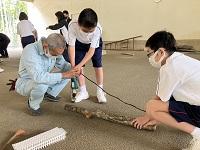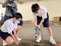 講師の方から説明を受けたあと,生徒は同級生と協力して電動ドリルで原木に穴を開け,そこに「のと115」の菌を入れました。