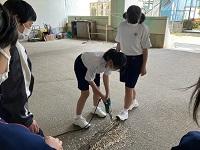 5月19日(木)、1年生が総合の時間に,しいたけ(のと115)の植菌作業を行いました。