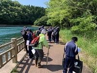 どんぐりの会の池上悟会長と会員の皆さんにガイドを務めていただき,植物の名前や特徴を説明していただきながら,植物を観察して歩きました。