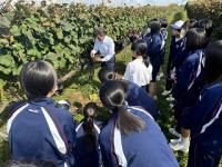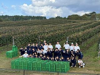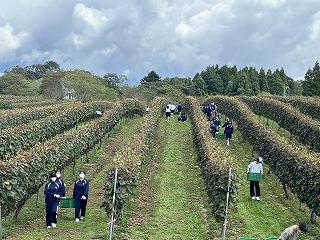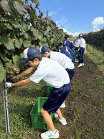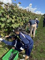 10月11日(金) 3年生が能登ワインさんでぶどうの収穫を行いました。この日収穫したぶどうは約400㎏。このぶどうで作られたワインは、5年後の成人式での記念品となります。5年後、このワインで乾杯しましょう!