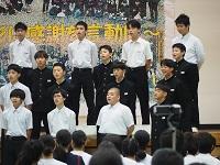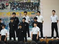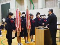能登地区大会や県大会で優秀な成績を収めた部活動が、賞状・楯(たて)・優勝旗を学校に納めました。
