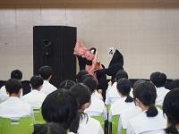 なかなか生で人形浄瑠璃を見る機会がないこともあり,生徒は興味津々で公演を見入っていました。