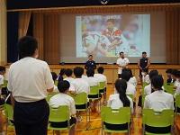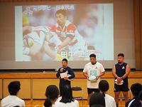 6月27日(木)に元ラグビー日本代表の田中史朗選手,上田聖選手(石川県出身),東恩納寛太選手が来校されました。