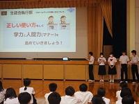 今年度第1回目は,生徒会執行部が「タブレット端末の使い方」,美化委員会が「SDGs」について発表しました。