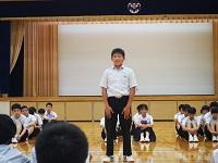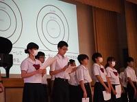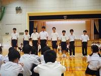 激励会では,県大会に出場する生徒が県大会での抱負を述べました。