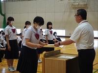 7月22日(月) 県大会で上位の成績を収めた部の納賞式と北信越大会(新潟県)に出場する選手の激励会がありました。