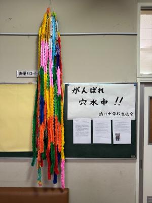 昨日の終礼で、登校している人たちに皆さんからの千羽鶴を紹介しました。
