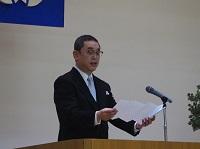 生徒会長の丹羽(にわ)さんから「今はつらいかもしれないが,いつかは復興します。諦めないで頑張ってください。」とエールをいただきました。