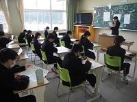 県からの派遣によるスクールカウンセラーによるお話を聞きました。不安や緊張を解きほぐす簡単な体操を教えていただきました。