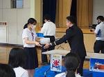 9月13日(月)5限目に自衛隊より南極の氷の贈呈が行われました。