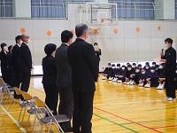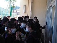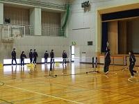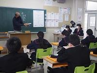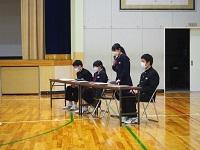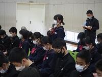 囃子体験では,代表生徒が能で使われる小鼓,大鼓,太鼓を実際に手にとって音を出してみました。