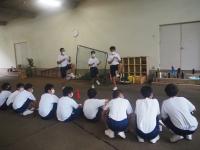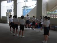 今年は、2つの学級を2つにわけて対戦する形にかえての初めての体育祭です。以前に比べ、学級の団結力がさらに求められることになります。生徒の応援の様子を見ていても、まずは3年生の気合がちがいます。とても自信をもって、大きな声を出して、1,2年生に応援歌や振り付けを一生懸命に教えています。今は、まだまだ全体は揃っていませんが、10日後にはとても素晴らしい応援合戦が見られるのは、今の練習風景を見ていて確信できます。どの団もしっかり頑張れ!