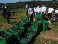 「能登ワイン」の皆さん、貴重な時間に大切に育てたぶどうを収穫させていただきました。また、記念ワインとして大切に熟成していただくことに、改めて感謝申し上げます。ありがとうございました。