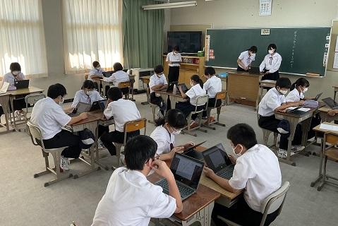 今回、生徒総会の議案書は、初の試みですべてクロムブックの画面を通して、確認しながら進められました。大量のプリント印刷することなく、一人ひとりもしっかり操作をし、スムーズに進行していきました。