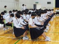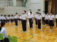生徒総会の前に、後期生徒会執行部および各学級の会長、副会長の任命式が行われました。校長先生から任命書が手渡されました。その後、生徒会長が後期生徒会として取り組んでいく決意を発表しました。任命された26名には、学校のため、学級のために頑張ろうという今の気持ちを大切にして、大いに力を発揮してほしいものです。
