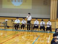 任命式の後、生徒総会が開かれました。後期の生徒会の方針を決める大事な総会です。質問や意見が出される中で、最終的には各委員会が計画した内容が決議されました。総会での決定事項は、とても重いものです。次は実行に結びつけ、みんなの手でより良い穴水中学校を作り上げていくことに大いに期待しています。