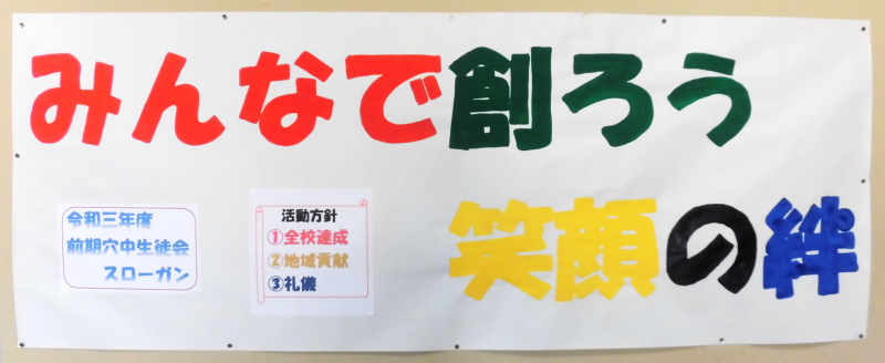 令和3年度前期生徒会のスローガンが生徒玄関に掲げられました。