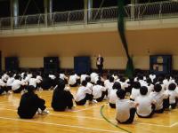 校長から、命を守るために意識してほしい、避難する際に守ってほしい「おかしも」と「3秒30秒3分」について、生徒へ話がありました。災害は、いつどこで起こるか分かりません。ただ、このような訓練の積み重ねが、いざという時の子供たちの的確な判断や行動に結びつくと思っています。