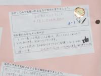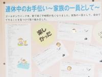 その時の子供たちが挑戦したお手伝いや行ってみて気づいたこと、また、そのお手伝いを受けての保護者からのメッセージをたくさん頂きました。その内容をまとめて、廊下に貼りだしてあります。今回、保護者から頂いたメッセージの一部を紹介します。