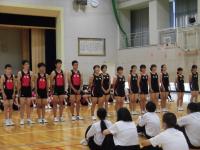 吹奏楽部の演奏に合わせて入場し、陸上部の全員の大きな声での「お願いします」という挨拶から始まり、キャプテンから「頑張ってきます。」というとても力強い決意表明がありました。学級代表による応援団の号令に合わせて、1拍子、2拍子などの手拍子と校歌で、全校でエールを送りました。陸上部は、県体予選会に出場するトップバッターとして、一人でも多く県体出場を獲得し、この後に続いて大会が行われる他の部活の勢いをつけ、穴水中全体の輝かしい成績に結びつけてほしいと願っています。 穴水中陸上部 頑張れ!
