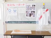 石川県での聖火リレーは、19の市と町をおよそ190人のランナーがつなぐ予定でしたが、新型コロナウイルスの感染拡大を受けて、公道でのリレーがすべて中止となりました。2日目は七尾市の「和倉温泉湯っ足りパーク」で、聖火の点火セレモニーが行われました。会場に設けられたステージには、2日目に走る予定だった79人のランナーが順番に登場し、トーチにともした聖火を受け渡す「トーチキス」を行いました。その中に、穴水町を走る予定だった舞谷さんも参加しました。舞谷さんのご厚意でその時使ったトーチとユニホームをお借りして、生徒玄関に今週(6/21~25まで)飾ってあります。本物に触れることは大切です。実際に手に取って見ても構わないということですので、どれくらいお重さか体感してみてください。