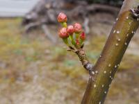 昨年、各学級で植えた「実のなる木」は、冬場に葉が落ち、枝だけになっていたのですが、春の日差しを浴びて、葉が出て、つぼみも見える木も出始めました。学級の取組や仲間との支え合いが、「大きな実」となることと重ねて植えた木々です。今年度も、緑の募金学校環境整備事業に応募しています。補助金対象校となれば、同じように各学級に「実のなる木」を配付したいと思います。