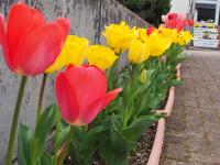 また、生徒玄関には、花が咲き誇り、体験部が植えたチューリップもきれいに咲いています。学校も今年度スタートしたばかりですが、0からのスタートの各学級に、協力という芽が出て、一人ひとりの活躍する花も咲き始めています。これから先、色んな色の花が咲き、色んな実が大きくなってくると思うと、とても楽しみです。
