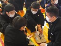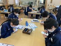 1年生が「ふるさと学習」の一環として、日本きのこセンターとJAおおぞらのご協力を頂いて、奥能登地域の特産シイタケ「のと115」の菌打ち作業に取り組みました。