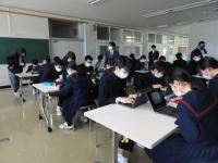 5月11日(火)、1、2年生がクロームブック操作に挑戦しました。全生徒分の搬入が遅れていて、計画より1ヶ月遅くなってしまいましたが、学年ごとに使用上の注意を確認して、個人用のアカウントとパスワードを入力し、ログインしてみました。