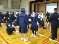 12月23日(水)に、全生徒の交流を図ろうと生徒会企画「穴中タイム」が行われました。イントロクイズ、先生クイズ、ジェスチャー伝言ゲームと難問奇問の数々で、寒い中でしたが、大いに盛り上がり笑顔が体育館中に広がりました。生徒会執行部は3密にならないように内容を考え、当日も盛り上がるにしたがって、密集になりそうになると「生徒同士の距離を保って下さい。」呼びかけていました。コロナ禍に負けない生徒の企画力に拍手!を送ります。
