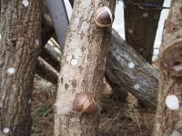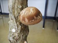 「のとてまり」として出荷されるには、幅が8cm以上、厚さが3cm以上、巻き込みが1cm以上ないと認められないとのこと。1年生が植菌した木から、いくつか大きなものができていますが、大きさ、厚さはクリアするが、巻き込みが少ないので、残念ながら「のとてまり」としての出荷は無理ということ。確かに、手間ひまかけてない?から納得。