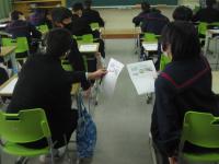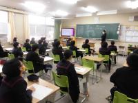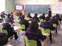 2月2日(火)3・4限目に、2年生を対象に県立穴水高校の先生に本校に来ていただき、高校数学とキャリアコースの科目の2つの授業をしていただきました。この出前授業は、総合的な学習の時間に、「高校を知ろう」の取組の一つとして、実際に高校の授業はどのような内容で、どのような授業をするのかを、体験に基づいて理解してもらおうと、地元の穴水高校にお願いして実施することができました。お忙しい時期にも関わらず、出前授業を準備していただいた、穴水高校様に感謝申し上げます。