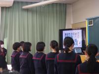 また、生徒代表2人が「自分の将来の夢」について、「困っている人に優しくでぃるように頑張って行動したい。」「残りの中学校生活で挨拶を心がけ、人を喜ばせるには何ができるか考えていきたい。」などの意見発表を行いました。