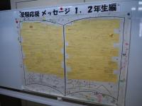 現在、廊下に在校生から受験生に向けた応援メッセージが貼られています。また、受験生同士(3年生)「お互い頑張ろう」の応援メッセージも貼られています。進路実現に向けて頑張れ!学校あげて、3年生皆さんを応援しています。