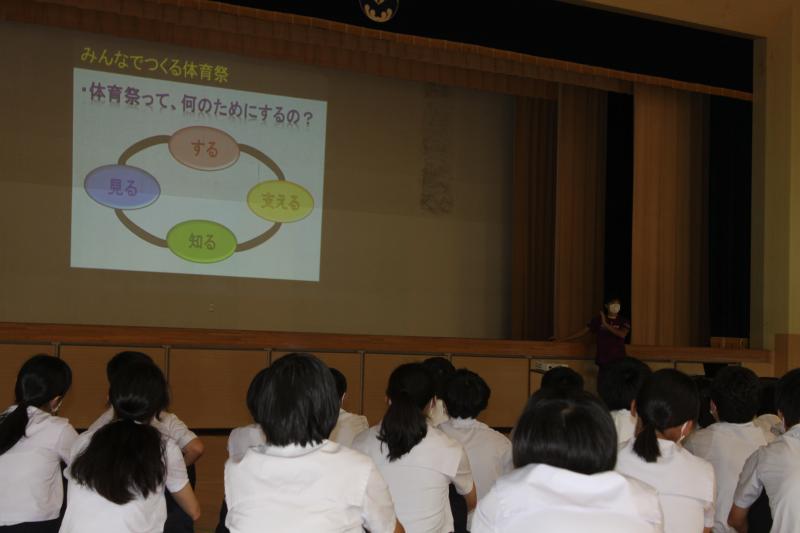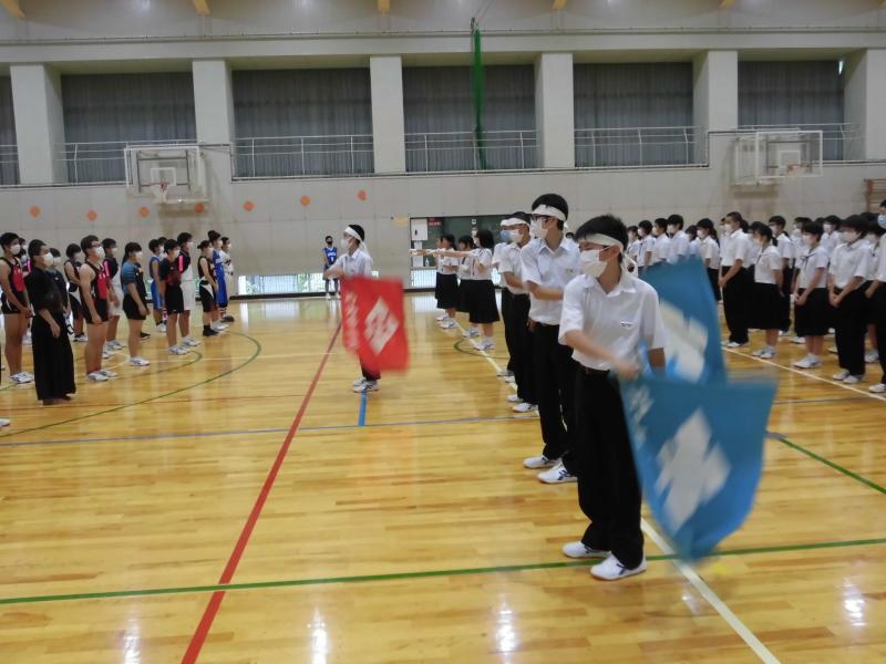 7月22日に9月の体育祭に向けての結団式を行いました。新型コロナウイルス感染症が全国的に拡大の傾向にある中、様々な感染予防の対策を練り、開催への準備を進めています。